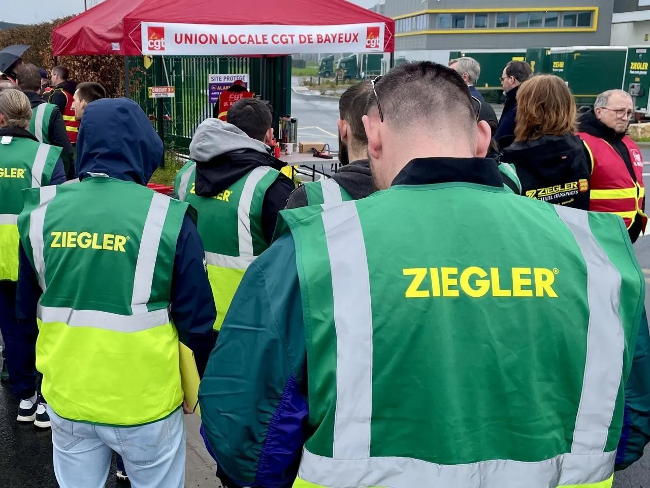 Confronté à de grosses difficultés financières, le groupe Ziegler France a annoncé son placement en redressement judiciaire le 3 mars 2026. À Bayeux (Calvados), ses employés se sont rassemblés ce vendredi 6 mars 2026 pour exiger des réponses, eux qui se retrouvent sans activité ou presque depuis un mois. © Ouest-France