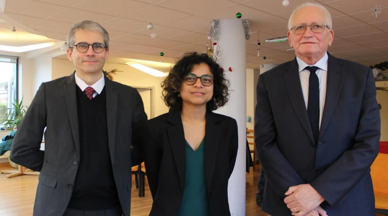 De gauche à droite : le directeur de l’Ehpad, Stéphane Péan ; la directrice adjointe, Jill Claude, et Jacques Prigent, président du conseil d’administration, lors des vÅ“ux au personnel de l’Ehpad Pierre-Wadier. © Ouest-France
