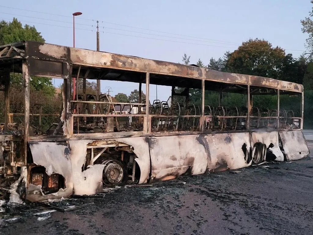 Un bus prend feu devant le collège de Carrouges dans la nuit... |