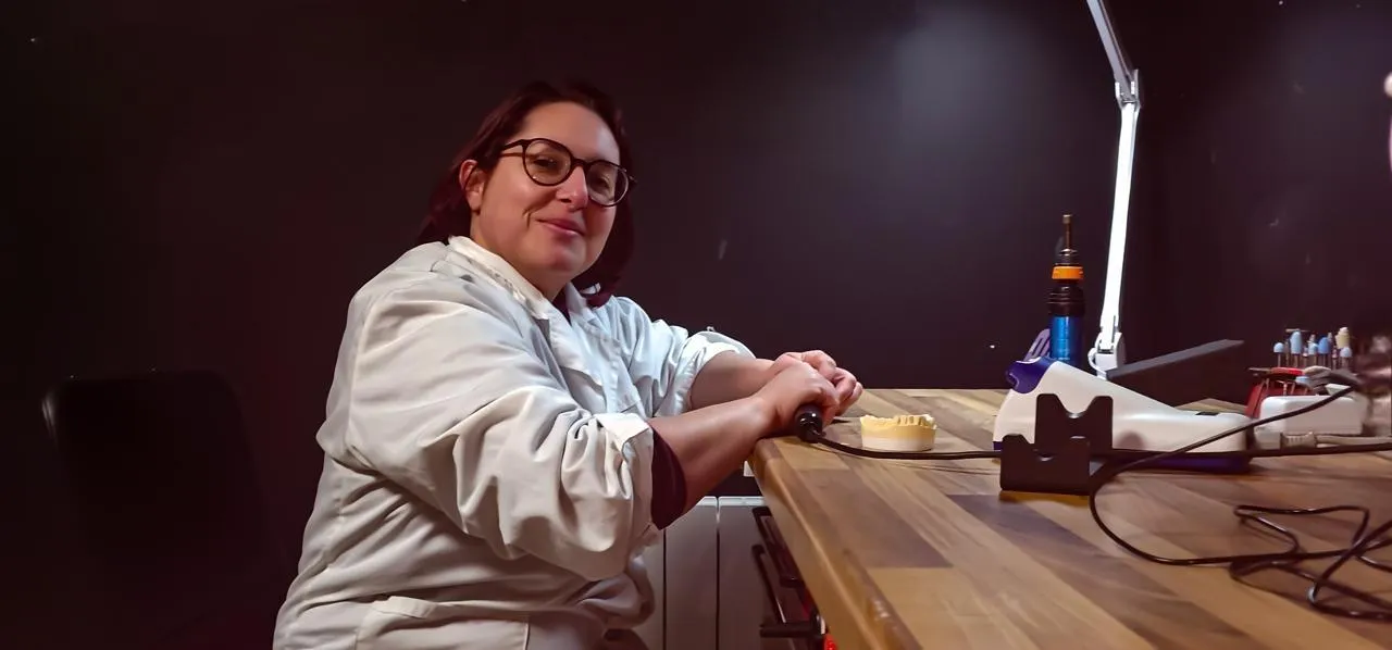 Ancienne aide-soignante à Écouché à ses débuts, Amandine Collet a changé de voie il y a dix ans pour des raisons de santé. Elle reprend alors les études, obtient un brevet technique des métiers (BTM) de prothésiste dentaire et exerce comme salariée pendant une dizaine d’années. « J’ai toujours eu envie de créer ma propre structure. Lorsque le projet de me mettre en actionnariat avec un praticien a échoué, je me suis dit : je vais me lancer », ajoute-t-elle. Un projet qui n’a pas été sans embûches : financement, recherche de local, achat de matériel technique.