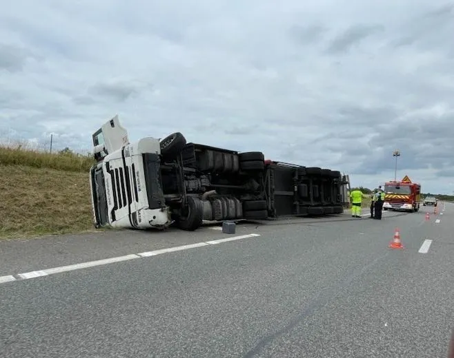 Un camion couché sur l’autoroute près d’Alençon, le conducteur a été transporté à l’hôpital... |
