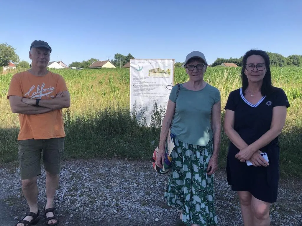 Eric Chauvel, Monique Taupin-Clouard, Géraldine Launay, du collectif de riverains, devant le permis de construire. © Ouest-France