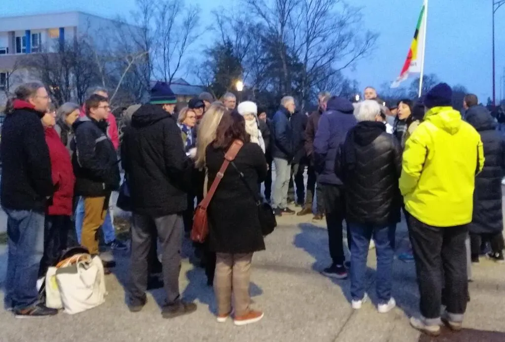 Plusieurs personnes se sont réunies devant le lycée Napoléon pour soutenir cet enseignant. Mais le motif de la suspension dénoncée par ces participants est contredit par plusieurs sources. © Photo transmise par un participant au rassemblement