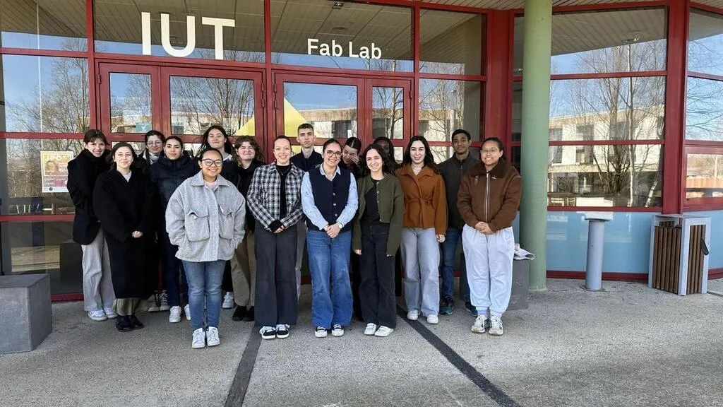 Les étudiants en 2e année de BUT carrières sociales de l’IUT de Damigny dont Lisa Lambert, à l’arrière-plan, cheveux au vent. © Inès Aït Benlabchir