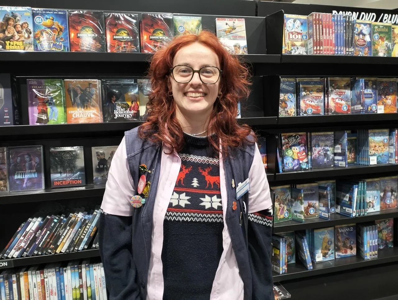 Joséphine Landreau, 23 ans, habitante de Saint-Lô (Manche) et libraire à l’espace culturel du Leclerc Agneaux est fan du film « Les Crevettes pailletées ». © Ouest-France