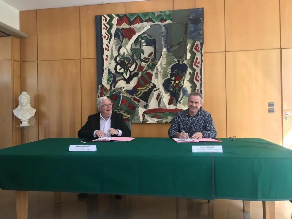 Yves Goasdoué, président de Flers agglo, et Bruno Balloche, président de la chambre des métiers et de l’artisanat Normandie-Orne, ont signé une convention vendredi 6 mai, à Flers, dans l’Orne. © Ouest-France