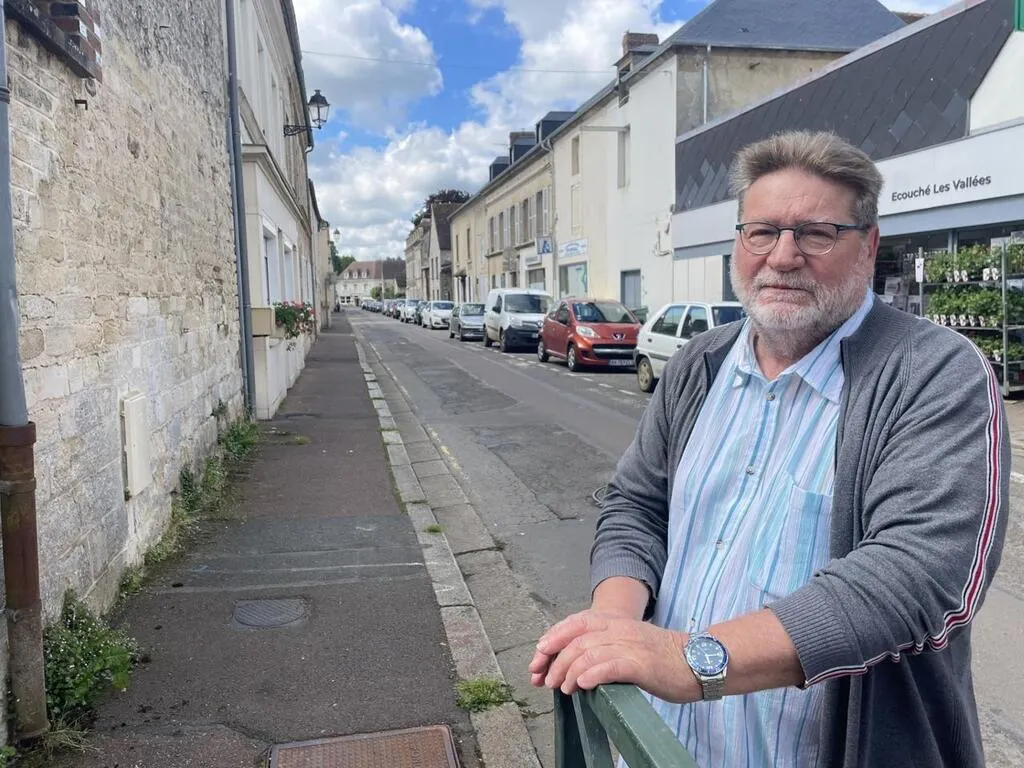 Le maire adjoint en charge des travaux, Gérard Viel, devant la rue Pierre-Trévin d’Ecouché-les-Vallées (Orne). © Ouest-France