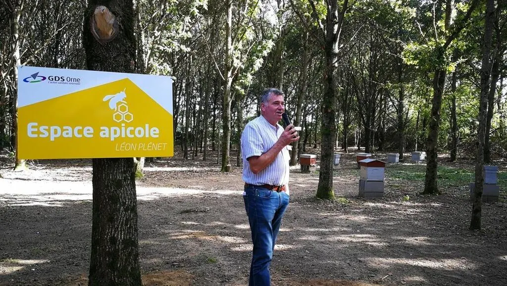 Samedi 7 octobre 2023, Daniel Perret, président du Groupement de défense sanitaire (GDS) section apicole de l’Orne, inaugurait le rucher Léon Plénet, à Damigny.