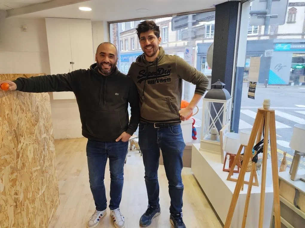 Les deux associés, Rached Chérif et Kévin Gaudron ouvriront le 16 février, leur magasin Le vide-grenier de L’Aigle, en plein centre-ville. © Ouest-France