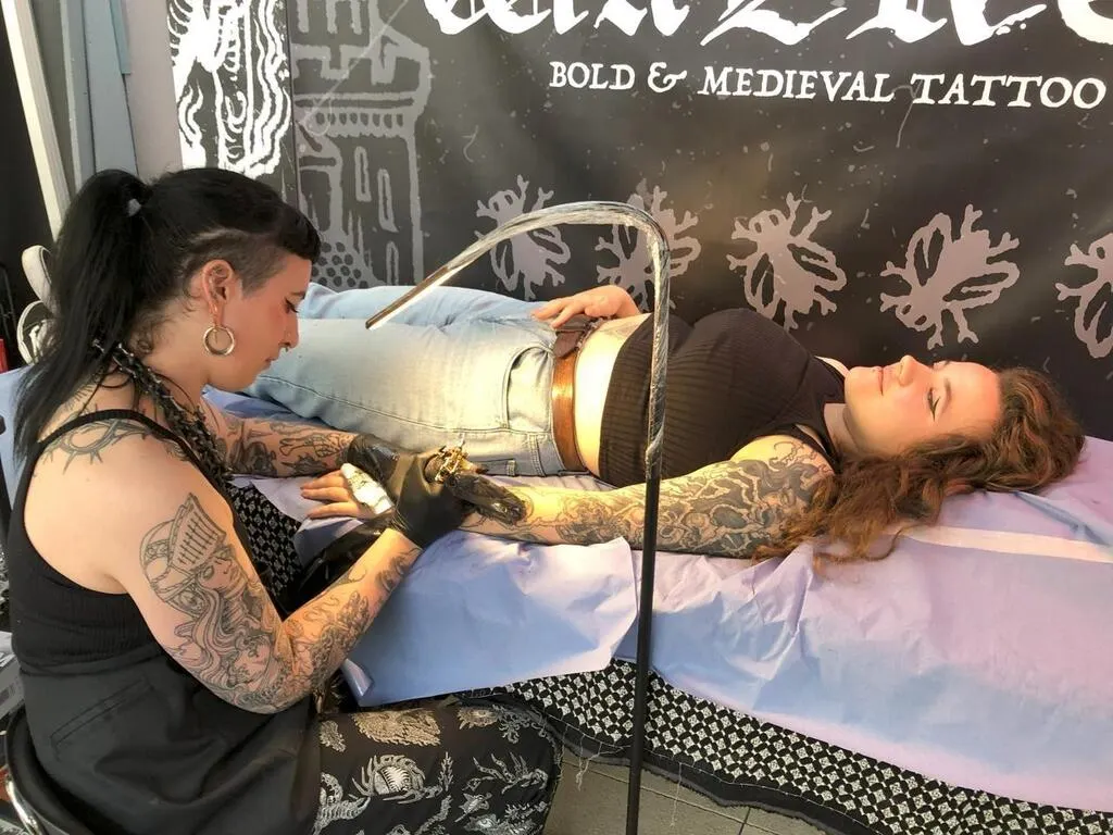 La fréquentation a baissé, mais les tatoueurs ont tout de même bien travaillé à la convention de tatouage Dentelle Ink d’Alençon, ce week-end. © Ouest-France