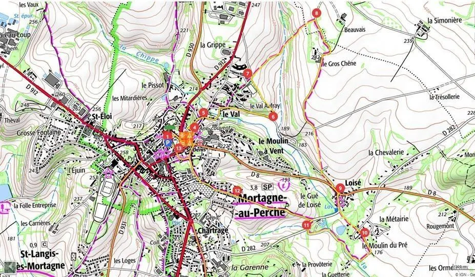 Prenez à gauche au carrefour en direction de Longny et aussitôt à gauche, la rue Marguerite-de-Lorraine puis descendez les marches.
