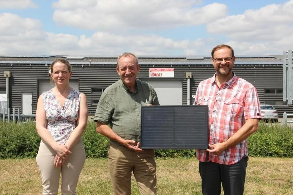 De gauche à droite, Hélène Tesson, ingénieure, Philippe Auvray, président du TE 61, Fabrice Mazurier, dirigeant de l’entreprise Solesens devant la maison des entreprises de la CDC. © Ouest-France