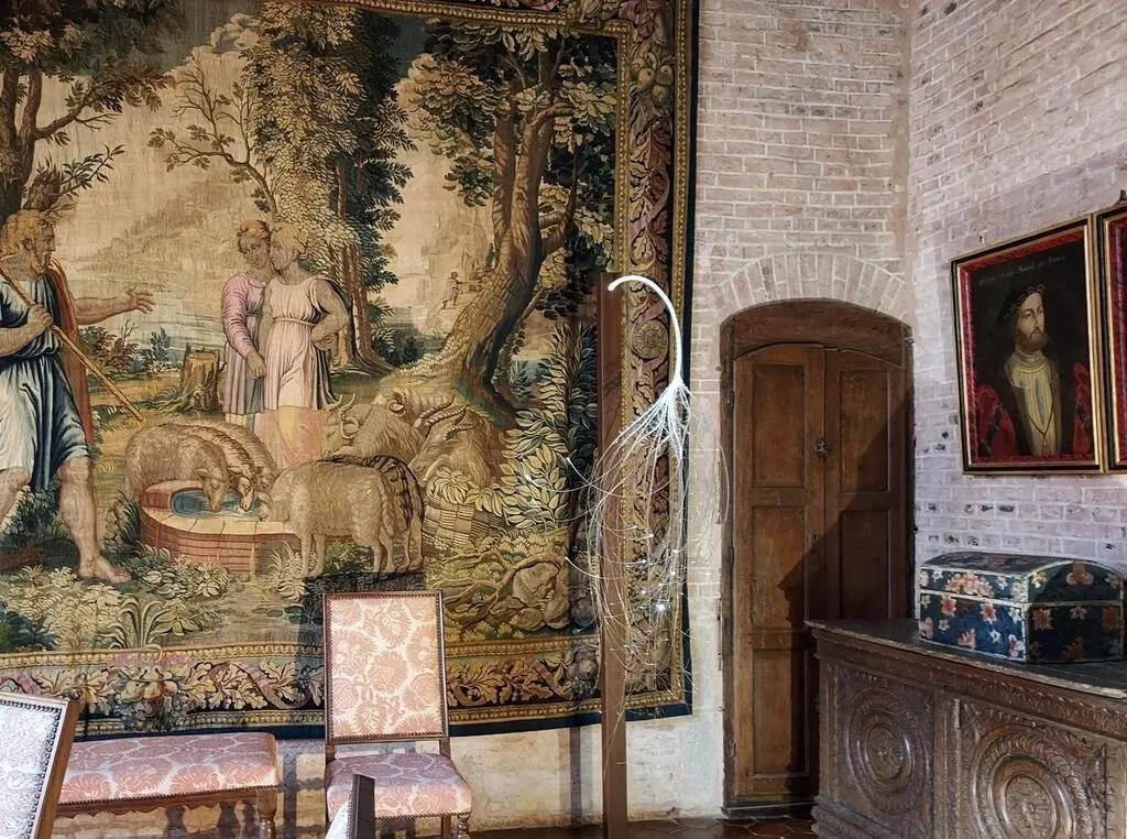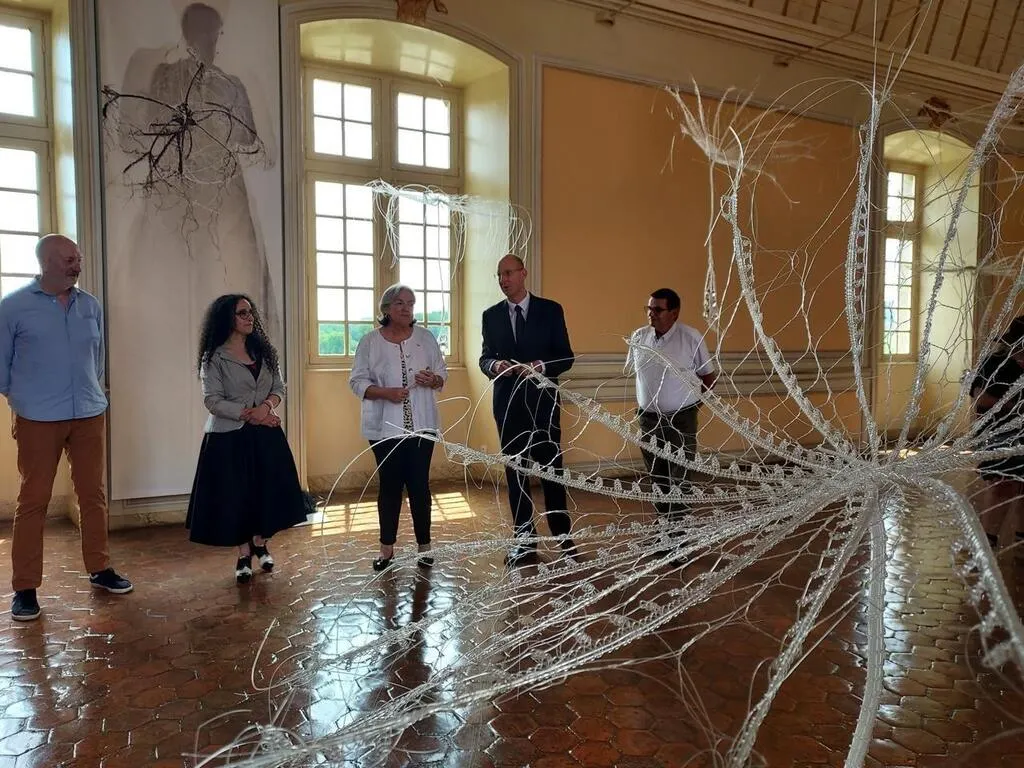 Samedi 17 juin 2023, l’artiste était présente pour son vernissage et une visite guidée au fil des pièces du château où les « sculptures » semblent faire partie inhérente de la décoration.