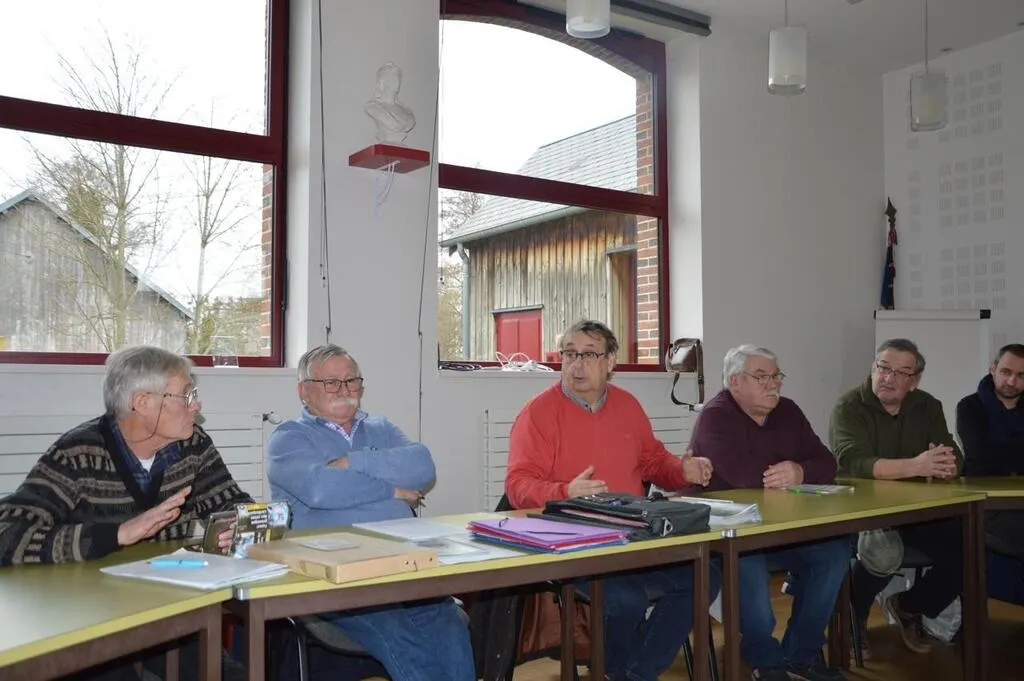 Samedi, à la mairie, l’Hameçon rislois en assemblée générale, en présence du président de l’Entente halieutique du Grand-Ouest, Jean-Claude Lecocq (troisième à gauche). © Ouest-France