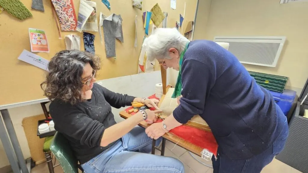 Morgane Gérard, à gauche, n’hésite pas à mettre la main à la pâte pour aider son élève Françoise. © Ouest-France