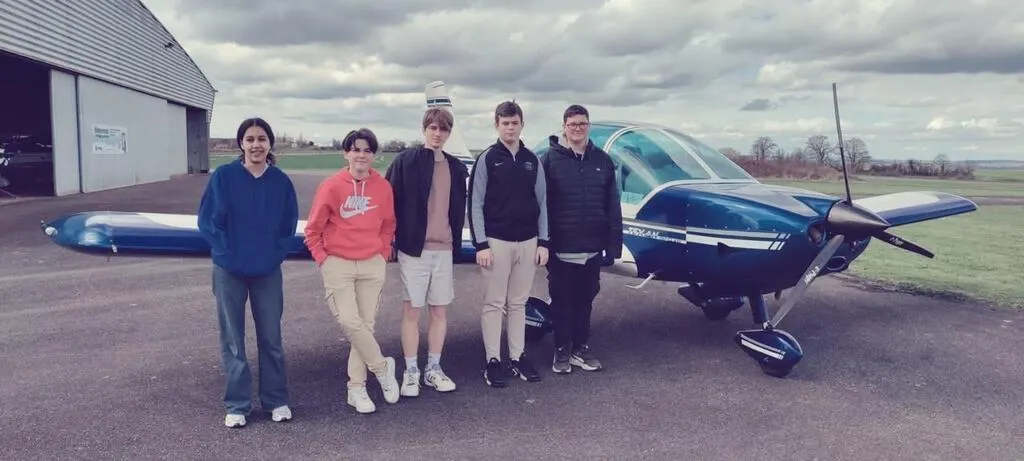 Des jeunes de la Mission locale devant un avion. © Ouest-France
