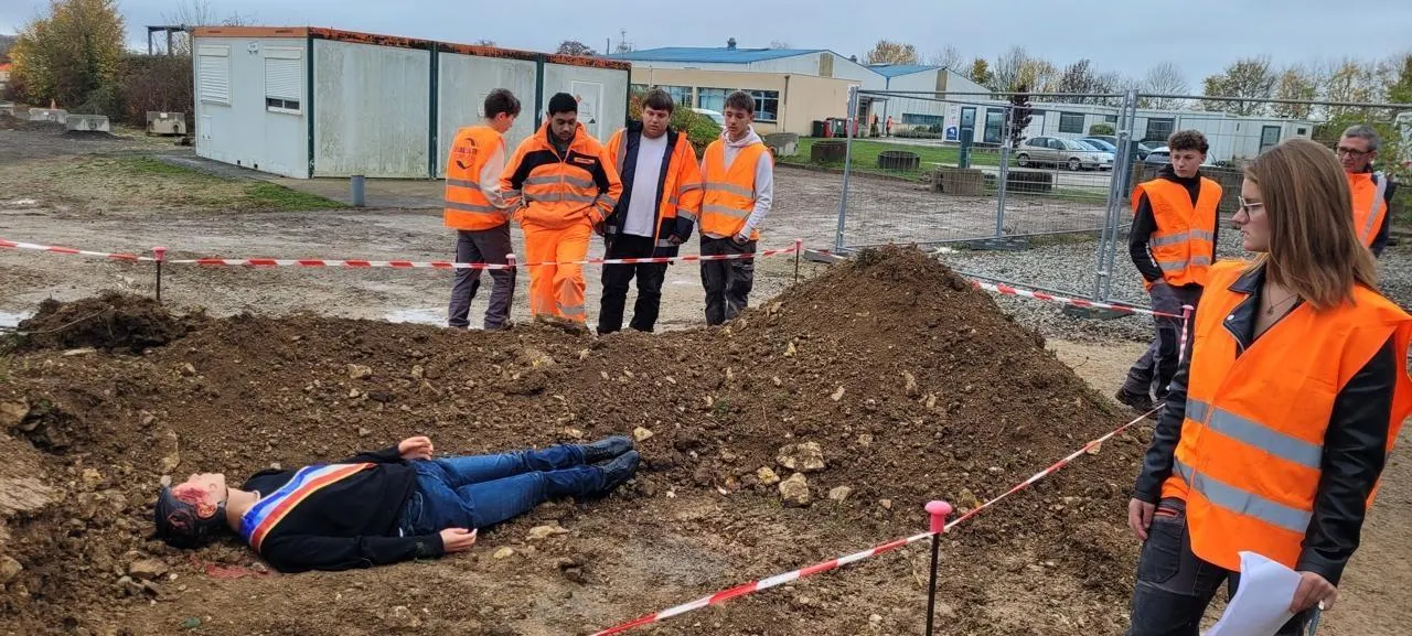 Jeudi 6 novembre 2025, une matinée peu banale attendait les élèves de l’École des travaux publics de Normandie (ETPN) à Saint-Paterne (Sarthe). Dans le cadre des journées d’intégration, une murder party était organisée sur le thème de la sécurité, en particulier sur un chantier de travaux publics. L’intrigue est la suivante : le maire de la commune, venu sur le chantier sans équipements de sécurité, s’est fait renverser par un engin.