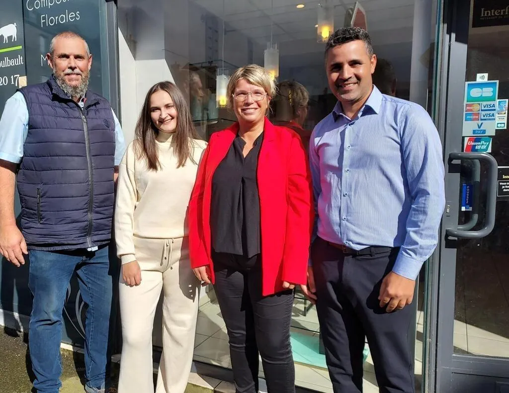 De gauche à droite : Stéphane Etchagaray, Mihaela Rusu, Nathalie Mary et Redouane Taibi devant la vitrine de la boutique. © Ouest-France