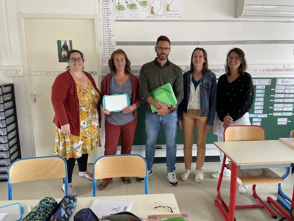 De gauche à droite, les enseignants de l’école de Monts-sur-Orne, à Goulet : Sabine Jouguet, Sandy Fouchet, Cédric Gaddini, Marie-Laure Villette et Clara Hébert. © Ouest-France