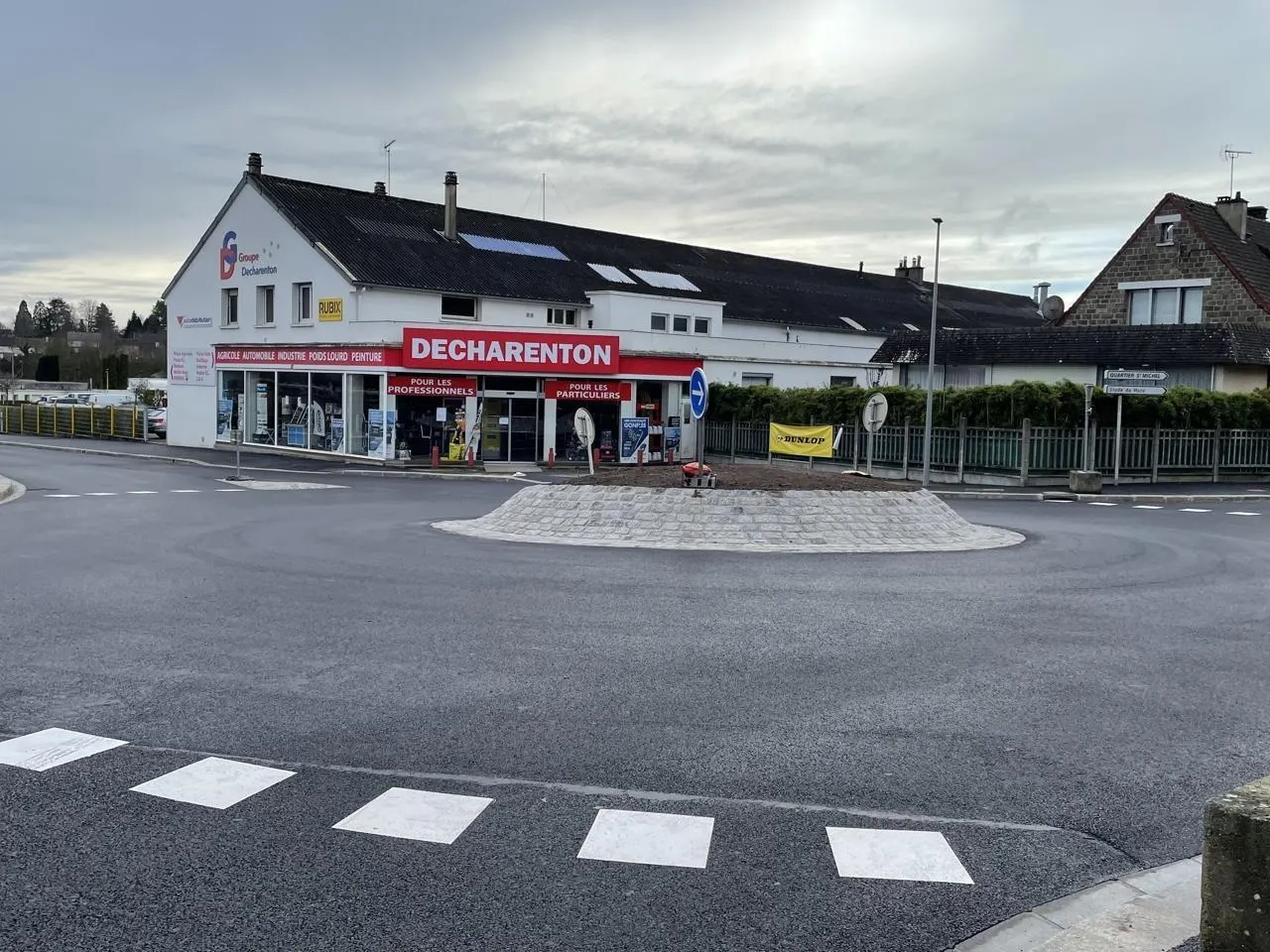 Un nouveau rond-point a été aménagé au niveau du magasin Decharenton à Flers, dans l’Orne. © Ouest-France