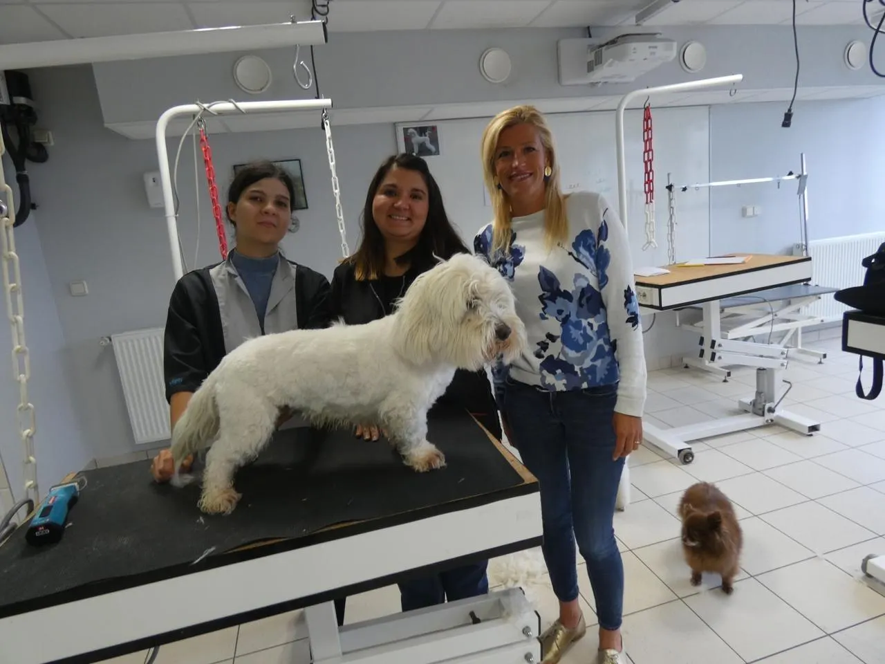 Louane, 17 ans, en deuxième année de toilettage, sa responsable de formation et la directrice de la MFR, Domitille Hibon. © Ouest-France.