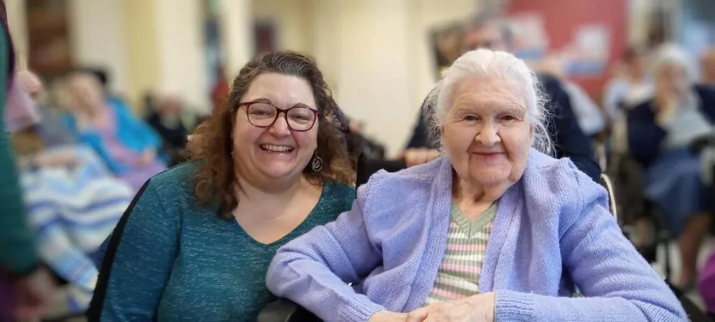 Andrée Martin accompagné de Madeline, animatrice de la résidence. © Ouest-France