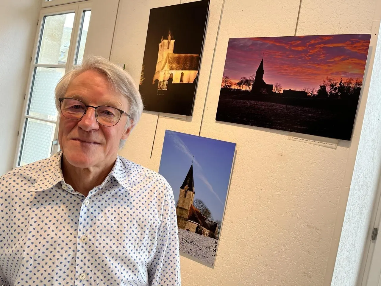 L’un des exposants, le photographe Jean-Pierre Herman, devant quelques-unes de ses photos. © Archive Ouest-France
