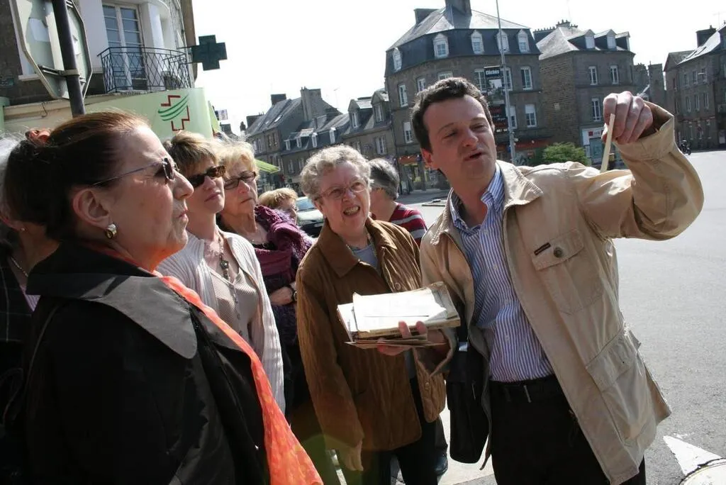 Michel Louvel, historien de La Ferté-Macé, en pleine visite guidée. Montagnes de Normandie