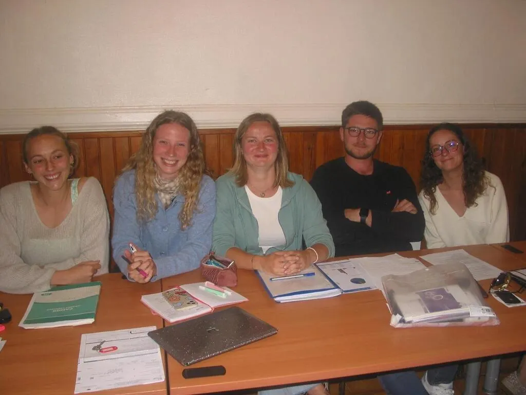 Marie Hoorelbeke (secrétaire), Clémence Feuillet (trésorière), Léa Guesnet (présidente), Thomas Sébire (vice-président), Élise Patrier (communication). © Ouest-France