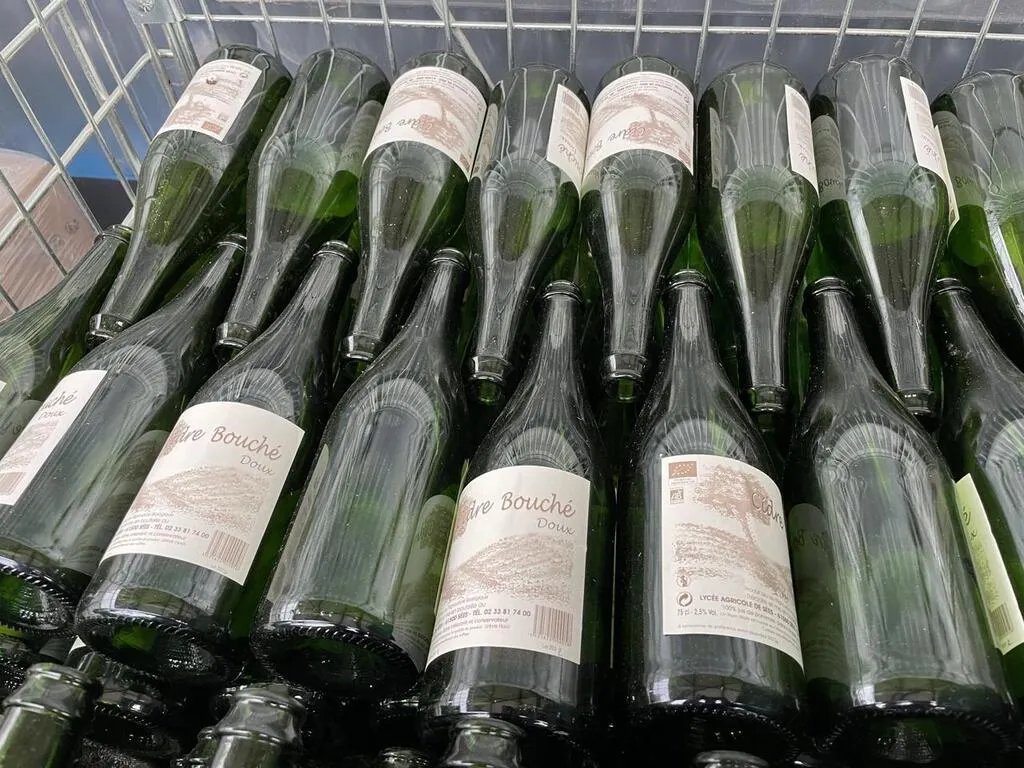 Le décollage des étiquettes est l’une des étapes sensibles du réemploi. L’utilisation d’une colle hydrosoluble est idéale, comme le fait la ferme du lycée agricole de Sées (Orne). Ouest-France