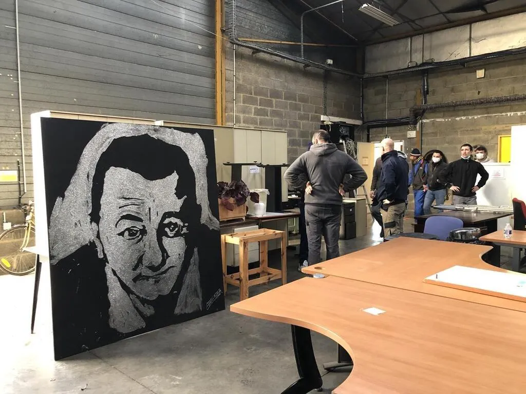 Un très grand portrait de Coluche, fondateur des Restos en 1985, va retrouver sa place dans les nouveaux bureaux de l’association départementale. © Ouest-France