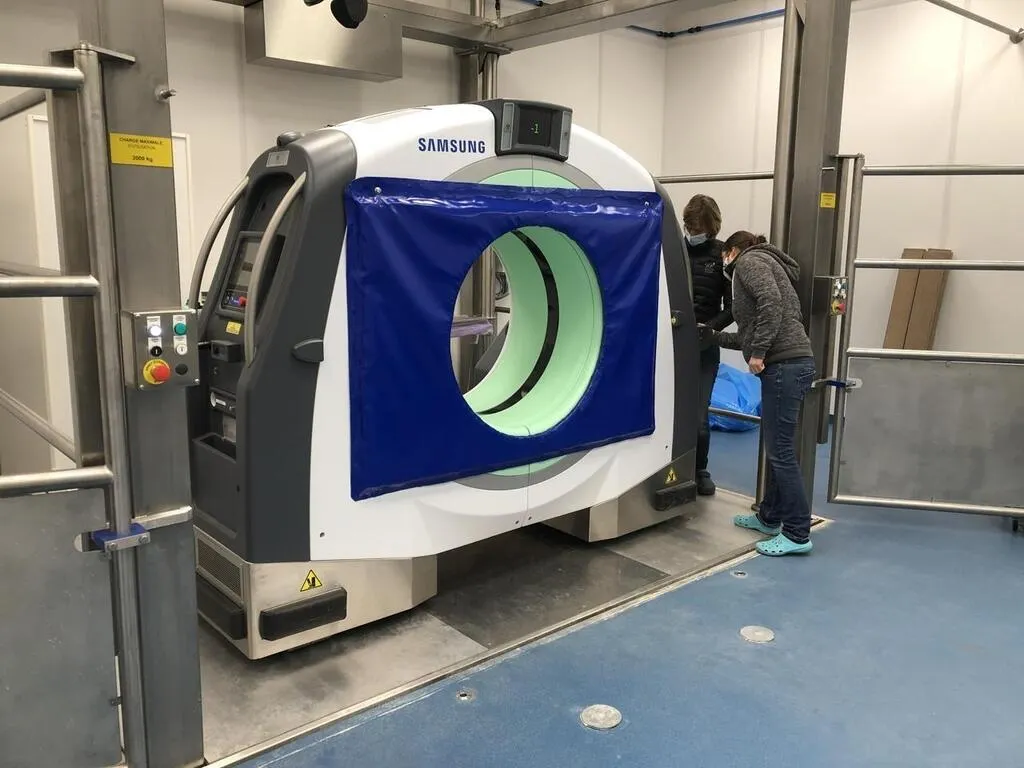 La clinique équine de Méheudin, à Écouché-les-Vallées (Orne), a acquis un scanner mobile. Utilisée à l’origine pour les humains, la machine permet aux vétérinaires de gagner en précision lors des interventions chirurgicales.