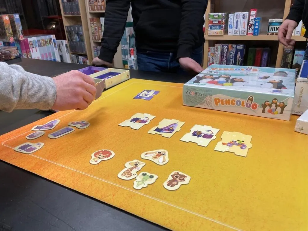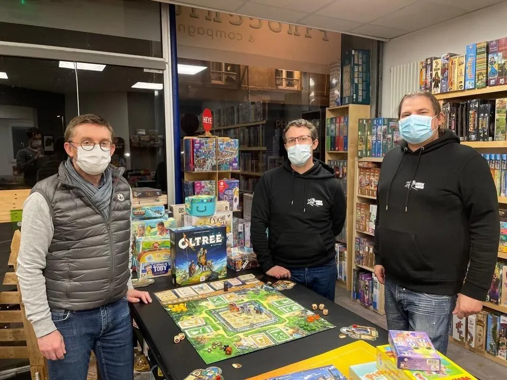 Une panoplie de boîtes de jeu de société trône sur la table. Emmanuel Montebran et Clément Rousselin, membres de l’association le Gobelin Farceur, nous accueillent au sein du magasin Pinocchio d’Alençon (Orne) en compagnie d’Erick Dadat, son gérant.
