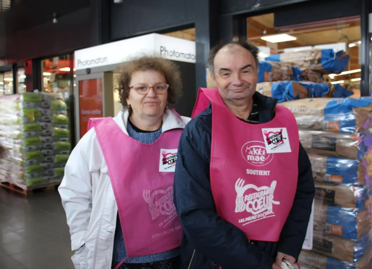 Tous deux font partie des vingt-trois bénévoles mobilisés pour se relayer aux entrées des magasins Carrefour Market et Aldi sur les deux jours de collecte.