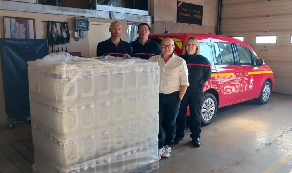 Vimoutiers. Une palette d’eau offerte par le magasin Coccinelle aux pompiers... |
