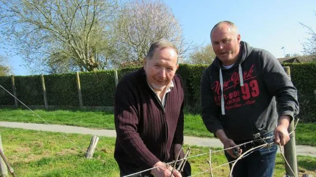 Philippe Bouvier et Marc Huette, dit Marco, ont procédé à la taille de la vigne,en compagnie des Vignerons du Hanap. © Ouest-France