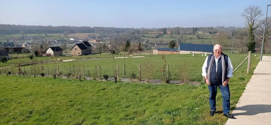 Christian Derouet, maire de Lonlay-l’Abbaye, lors de la présentation des parcelles à vendre de l’îlot bocager de Saint-Nicolas. © Ouest-France
