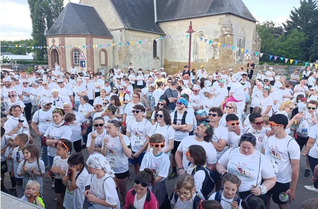 Il y avait 5 km à parcourir et tous les kilomètres, les marcheurs étaient aspergés d’une poudre colorée, à base d’amidon de maïs. Une marche et non une compétition, à travers les routes et chemins de la commune, dans un esprit de franche rigolade.