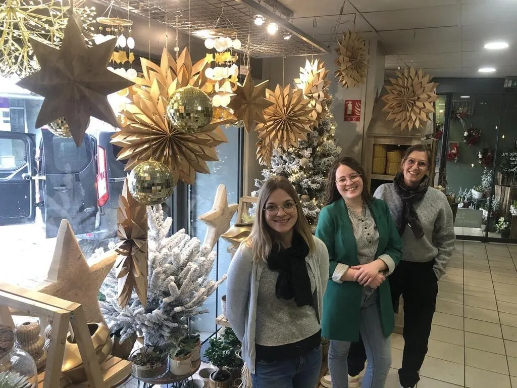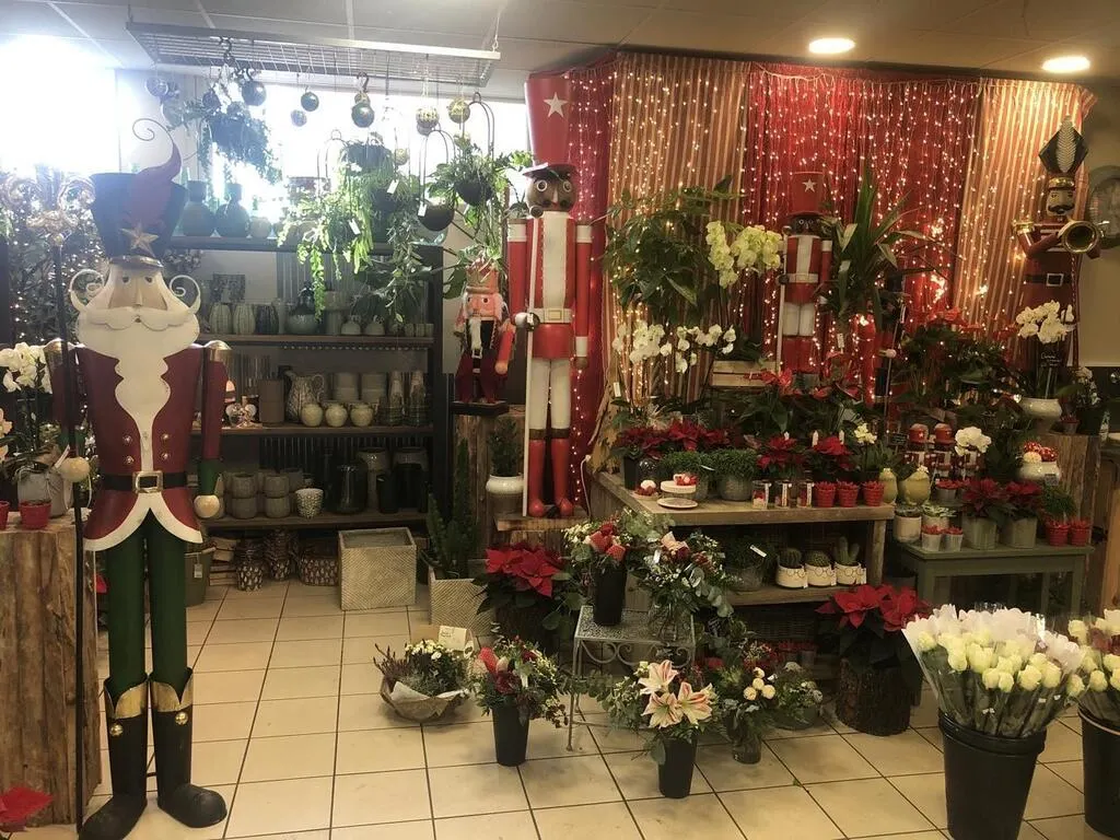 La fleuriste, qui a ouvert en 2011, a réparti avec minutie de nombreuses étoiles dorées autour de ses sapins blancs pour créer une atmosphère de confort lumineuse. Avec des petites originalités : « Je suis allé en voyage à Bali et j’ai ramené des petites créations faites mains, par de petits artisans. » Les sapins sont ainsi décorés de coquillages venus du bout du monde. Au fond de la boutique, de grands soldats casse-noisettes font office de gardiens pour les superbes bouquets de fleurs.