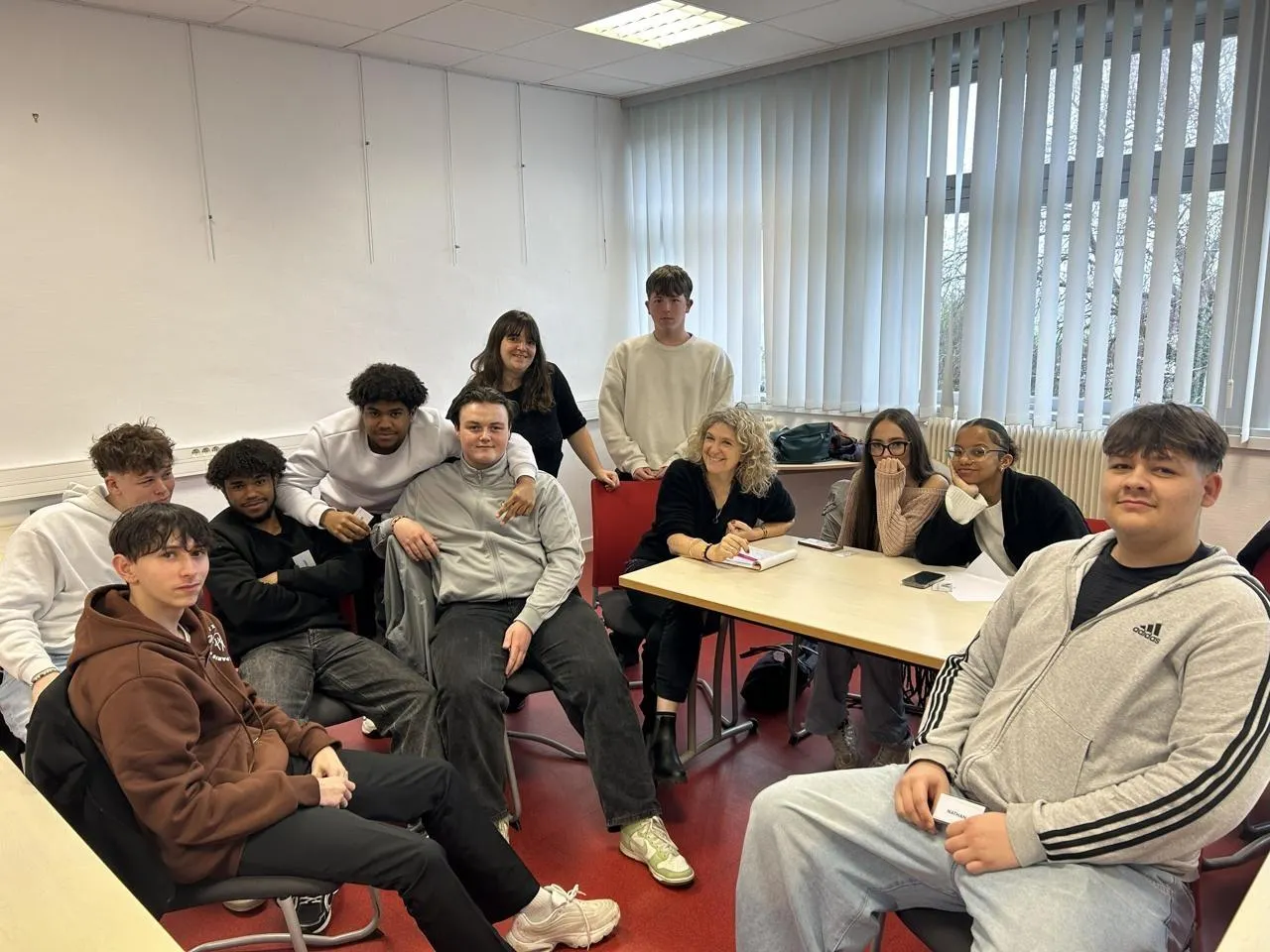 Bénédicte Pagnot (au centre) a animé des ateliers d’écriture, ce lundi 9 et ce mardi 10 février 2026, au lycée Fulgence-Bienvenüe, à Loudéac. Ici, une partie de la classe de 1re pro MCV travaille sur son futur documentaire. © Ouest-France
