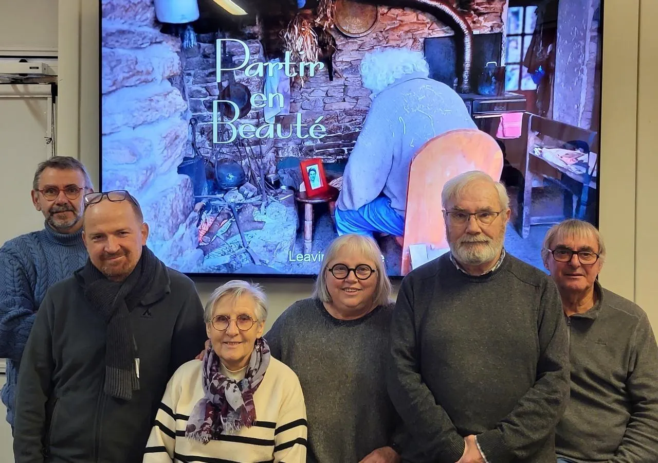 Françoise Christien Vanco (3e à partir de la droite) et les 7 autres membres du collectif Tykerlab encouragent les visiteurs à voter pour leur film intitulé Partir en beauté. Des prix sont décernés ainsi que des récompenses qui les aideraient à poursuivre leurs actions. © Ouest-France
