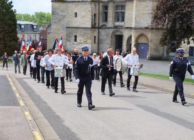 Le cortège, composé d'élus, de pompiers, de gendarmes, de policiers, des membres du Conservatoire, et de citoyens s'est ensuite dirigé vers le Trou Bourgine, dans les Pâtures pour un apéritif citoyen et musical.