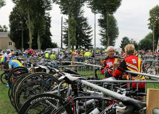 Deuxième jour de la 79e Semaine fédérale internationale de cyclotourisme, organisée à Mortagne-au-Perche, avec des circuits passant par Bellême. Et un ravitaillement organisé sur le champ de foire.