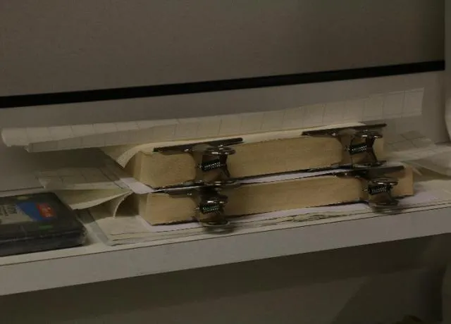 Même stockés proprement, les anciens décors de l’heure du conte ou les panneaux d’expositions accumulés là depuis des années donnent une impression d’encombrement. L’atelier de couverture et de réparation, la pièce la plus vaste, accueille tout un monde hétéroclite d’objets, machine à désinfecter les livres, rouleaux de plastique pour les recouvrir, établi, outillage, fournitures diverses… Et puis des livres, des livres, des livres. À perte de vue.