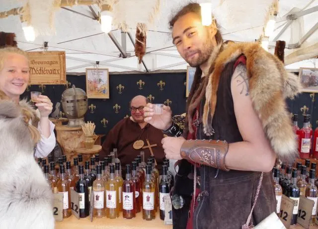 Couverts de peaux de bêtes, de pelisses sombres ou de voilages clairs, touristes et passionnés de culture médiévale se fondent dans le décor.