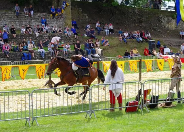 Particulièrement appréciés, les spectacles équestres rassemblent les foules?; les cavaliers professionnels s’y font tour à tour voltigeurs ou guerriers. Et entre leurs lances qui tournoient, les remparts du château médiéval se découpent, majestueux, comme éternels.
