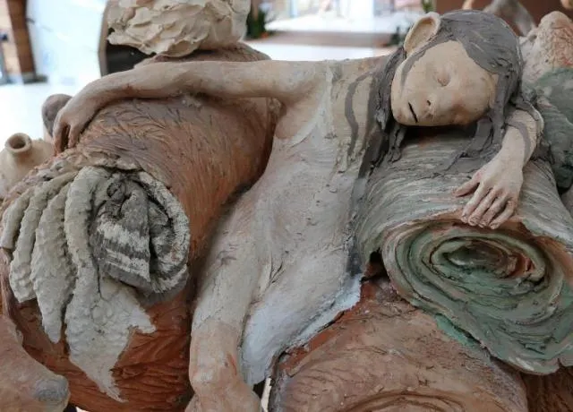 L’univers de Fanny Ferré, ce sont des hommes, des femmes, des enfants, des animaux, souvent en mouvement, parfois arrêtés, comme pour se reposer. « Ce que j’aime, ce sont les humains, à travers la planète, dans la nature, reconnaît l’artiste. Je ne cherche pas à faire des personnages tristes, mais ils sont graves, pas rigolards c’est sûr. »