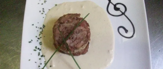 Délicieux repas avec la découverte de l'oeuf cocotte revisité aux St jacques, en plus nous avons bénéficié d'une fanfare parcourant la rue....