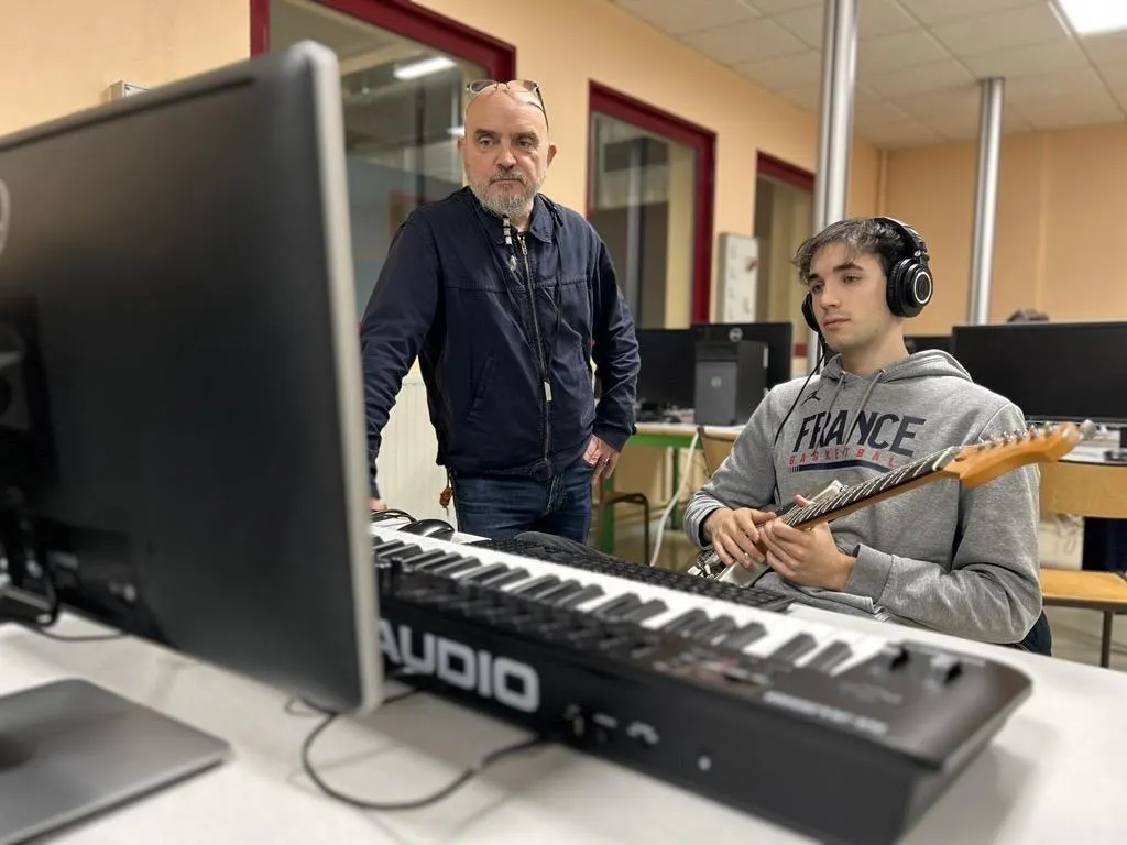 C’est la troisième année qu’Émile Lature, guitariste depuis dix ans, participe à l’atelier proposé par Michel Alegre. Il travaille sur une ballade soul. © Ouest-France
