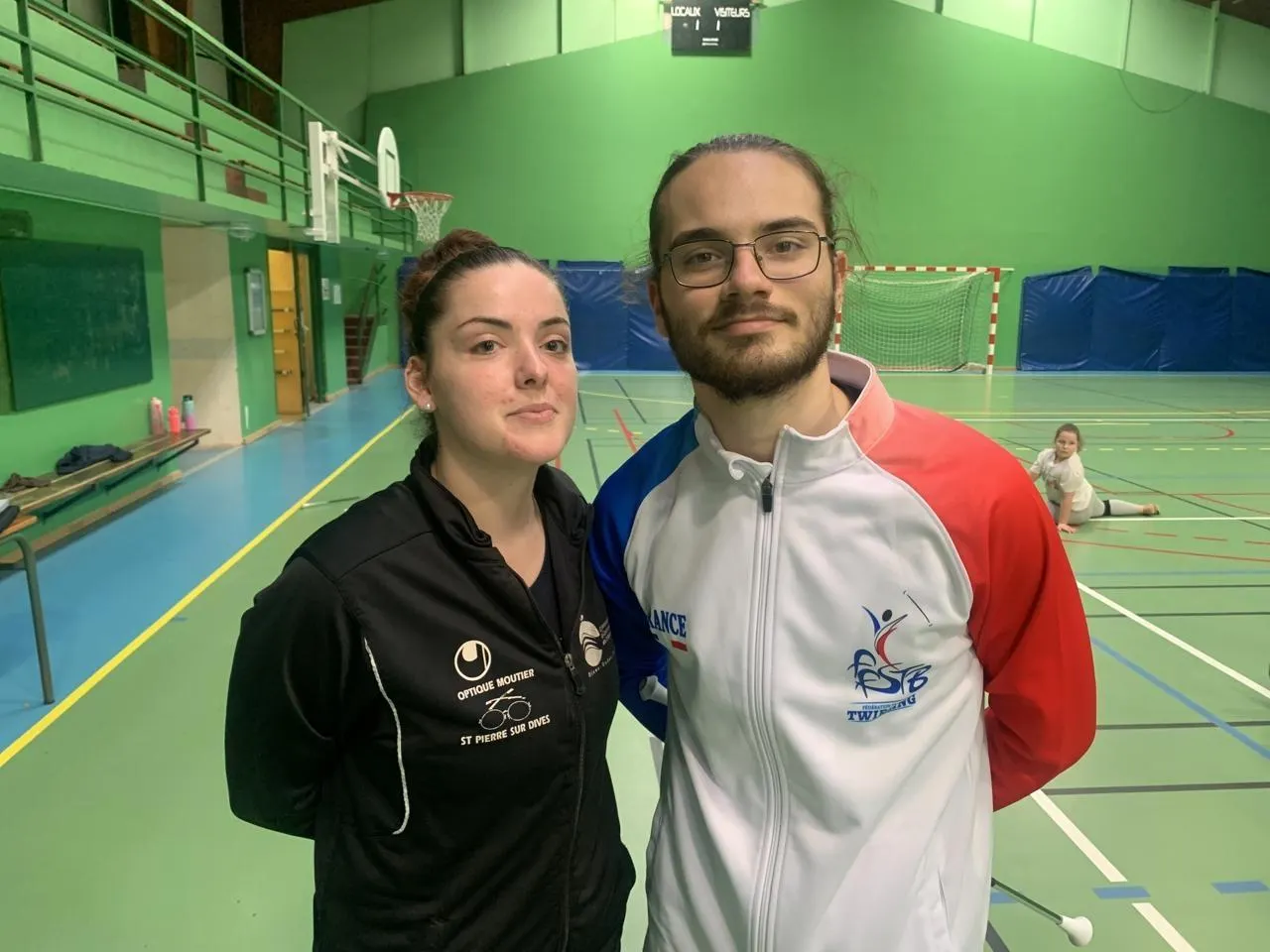 Tom Jourdheuil se prépare pour le championnat d’Europe de twirling-bâton. Avec son entraîneuse, Marion Dubreuil. Ouest-France